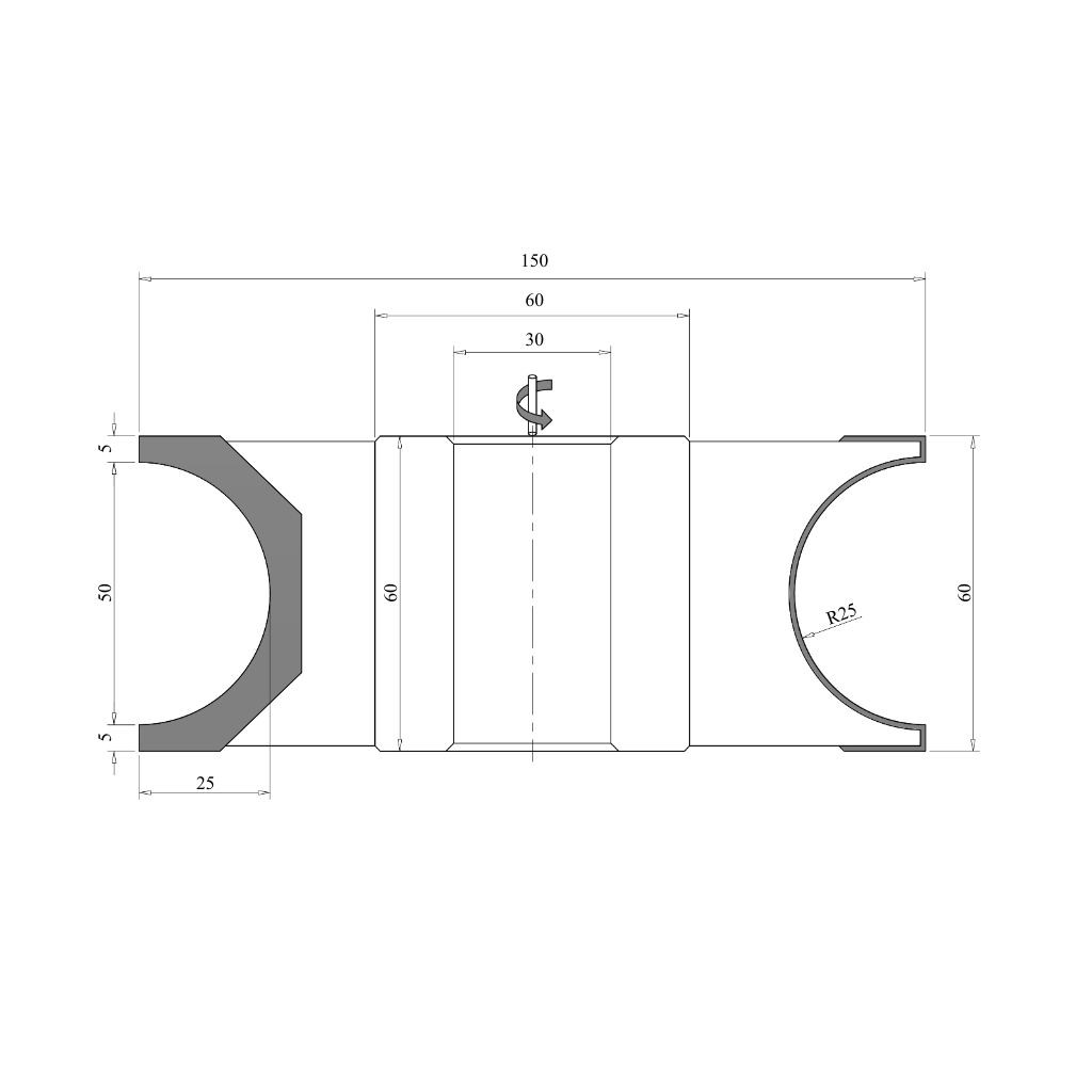 Freză concavă jumatate de cerc cu rază de 25 mm, diametrul de 150 mm, grosimea de 50 mm, 4 cuțite, HM HW, cu placuţe brazate, cu alezajul frezei de 30 mm. Cap freza lemn Woodmaster de calitate industrială, pentru mașini de frezat lemn, cu cuțite Tigra Germany din carbură metalică.